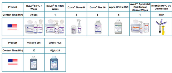 In Canada, use of a healthcare grade disinfectant with a Drug Identification Number (DIN) is required. Refer to Health Canada’s Surface Disinfectants for EVPs.